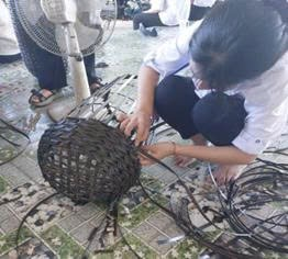 Ban đầu, nhiều em còn khá bỡ ngỡ với những sợi nhựa và cách đan thủ công, tuy nhiên sau khi được hướng dẫn, các em đã dần quen và tạo ra những sản phẩm nhỏ xinh của riêng mình. Hoạt động này không chỉ mang lại niềm vui mà còn giúp học sinh hiểu thêm về sự khéo léo, tỉ mỉ và kiên nhẫn cần có trong các nghề thủ công truyền thống.